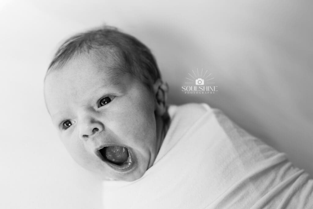 I want my newborn sessions to be authentic to you, and just as importantly, authentic to me. I’m drawn to newborn photography that reflects real life; the little wrinkles, tiny stretches, big yawns and sometimes even big, alert eyes. What that means is, I don’t want you to stress about your baby sleeping at the perfect time. Almost always, the baby sleeps at some point during the session, and when babies are awake, we can get some of the sweetest expressions and personality that it already starting to show!